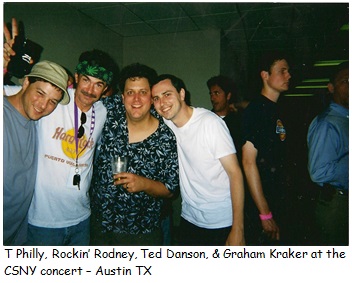 We’re just getting settled into a cool conversation with THE David Crosby when all of a sudden Rodney comes running out on the balcony screaming “Rocking in the free world,” with his dick in his hand. Before we can say anything, he’s letting one fly. He’s pissing like a race horse two flights down and it hits both Neil Young and David Crosby right on top of their big bald heads.